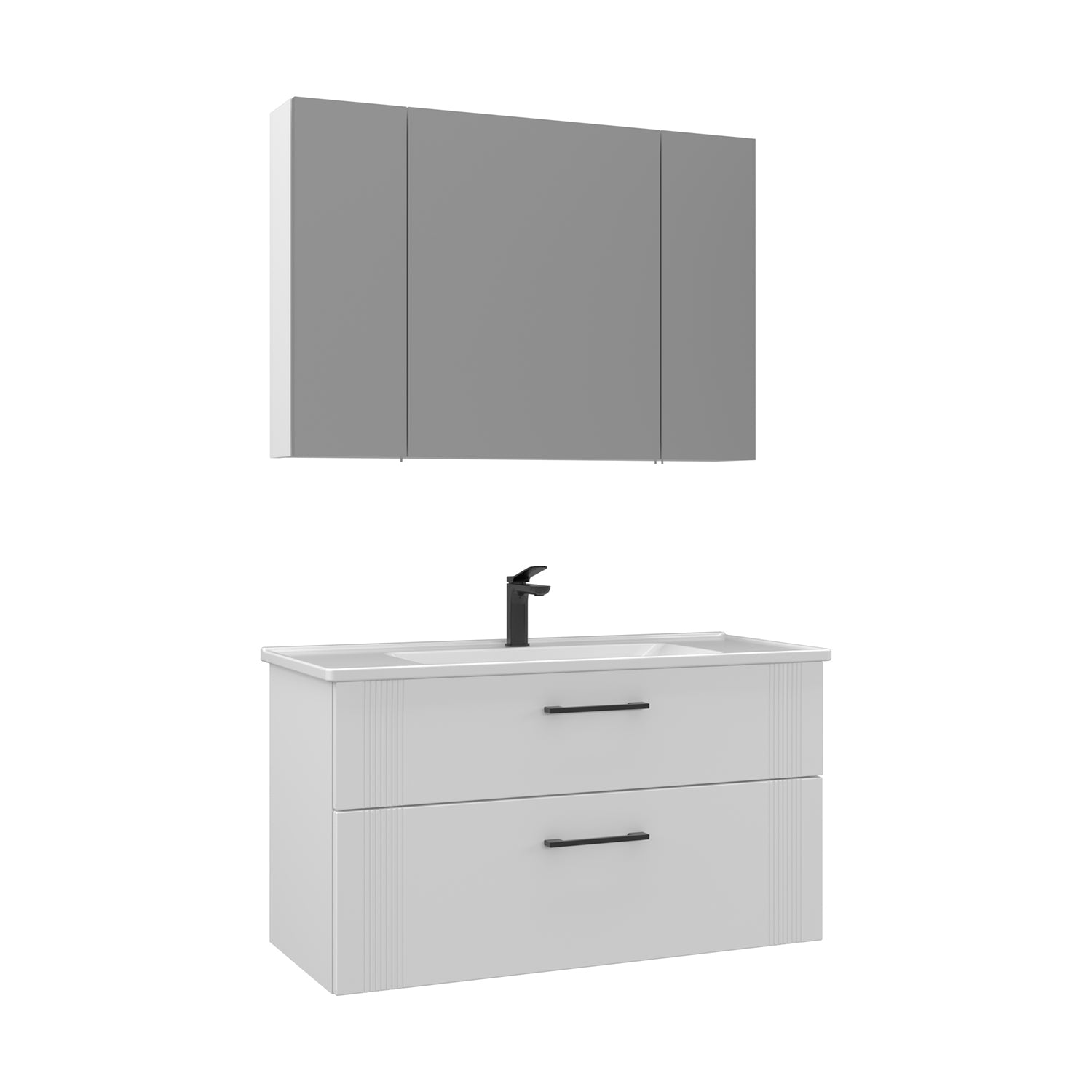 Orka Bari V2 100 cm Çekmeceli Aynalı Dolaplı Banyo Dolabı Takımı | Dolaplı | Beyaz