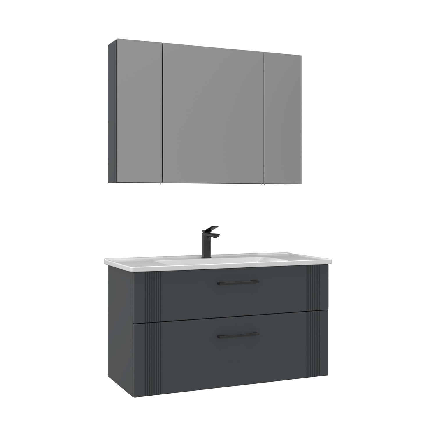 Orka Bari V2 100 cm Çekmeceli Aynalı Dolaplı Banyo Dolabı Takımı | Dolaplı | Mat Antrasit