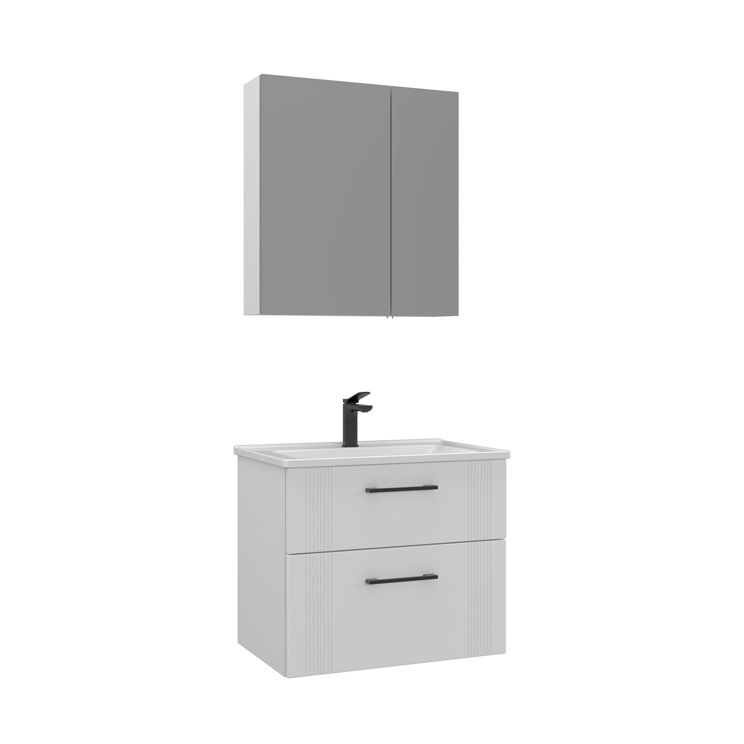 Orka Bari V2 65 cm Çekmeceli Aynalı Dolaplı Banyo Dolabı Takımı | Dolaplı | Beyaz
