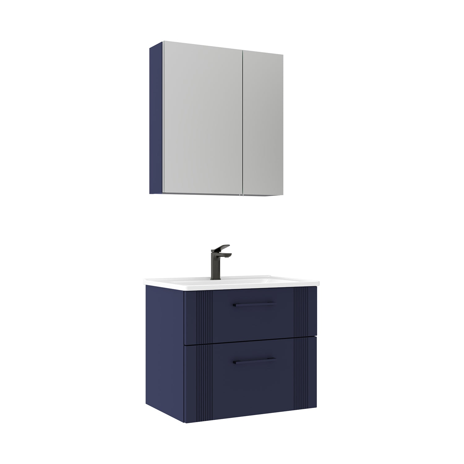 Orka Bari V2 65 cm Çekmeceli Aynalı Dolaplı Banyo Dolabı Takımı | Dolaplı | Mat Lacivert