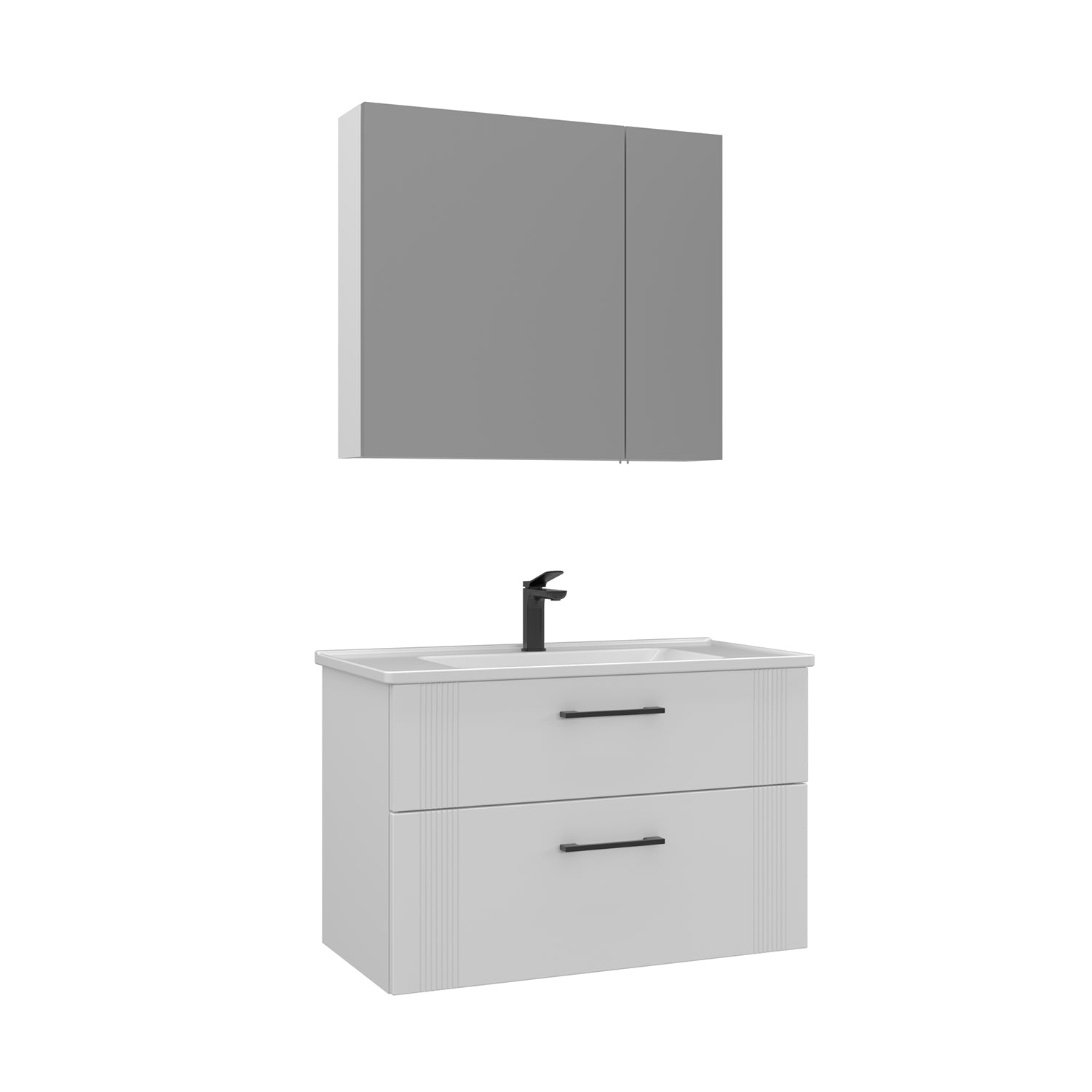 Orka Bari V2 85 cm Çekmeceli Aynalı Dolaplı Banyo Dolabı Takımı | Dolaplı | Beyaz
