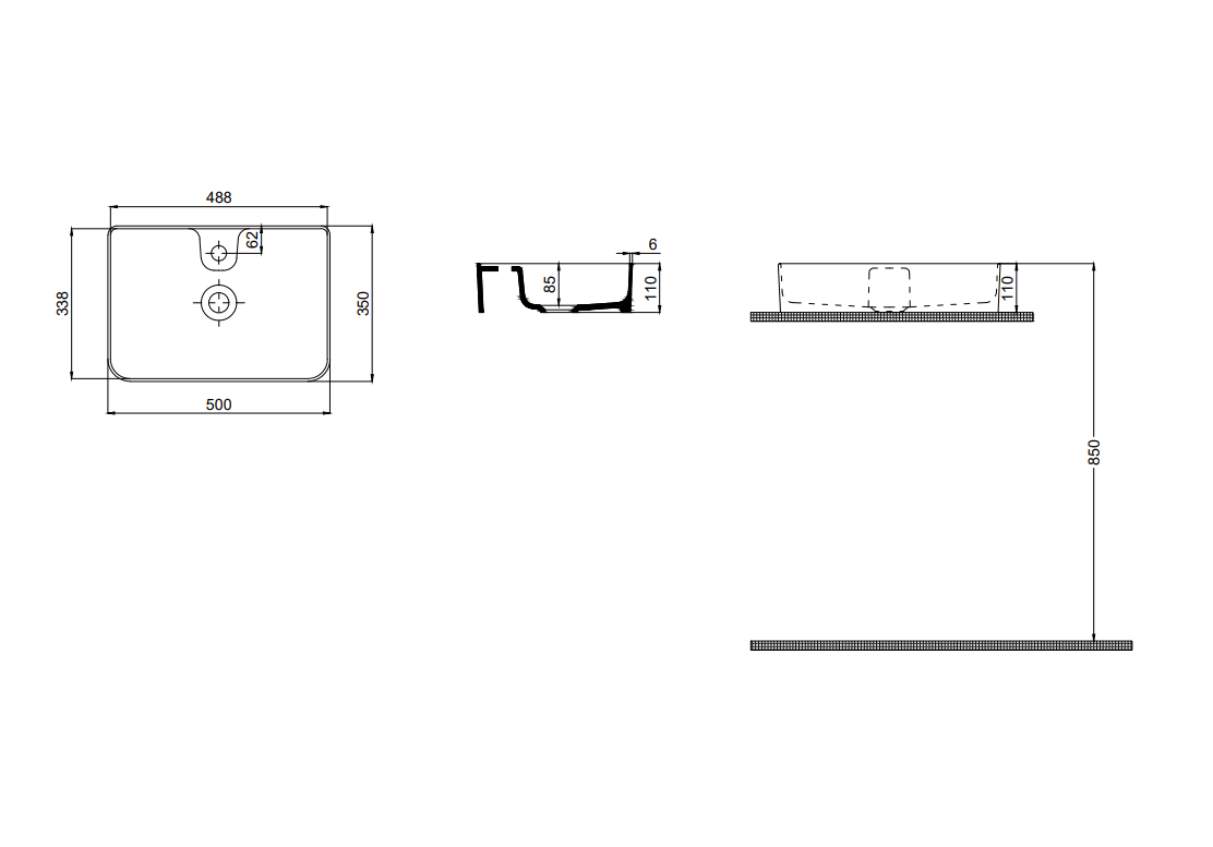 - ► Lavabo üstü batarya montajına uygundur